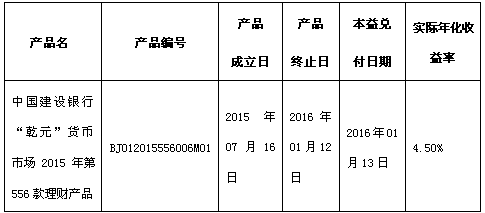 根据与投资者的约定,中国建设银行北京市分行发行的下列理财产品已经到期,现将理财产品兑付及清算情况进行信息披露: