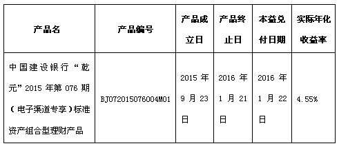 根据与投资者的约定,中国建设银行北京市分行发行的下列理财产品已经到期,现将理财产品兑付及清算情况进行信息披露:
