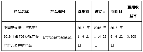 根据与投资者的约定,现将中国建设银行北京市分行理财产品成立情况信息进行披露:
