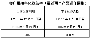 下个运作周期客户预期年化收益率于2016128日(含)开始执行。