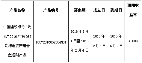 根据与投资者的约定,现将中国建设银行北京市分行理财产品成立情况信息进行披露: