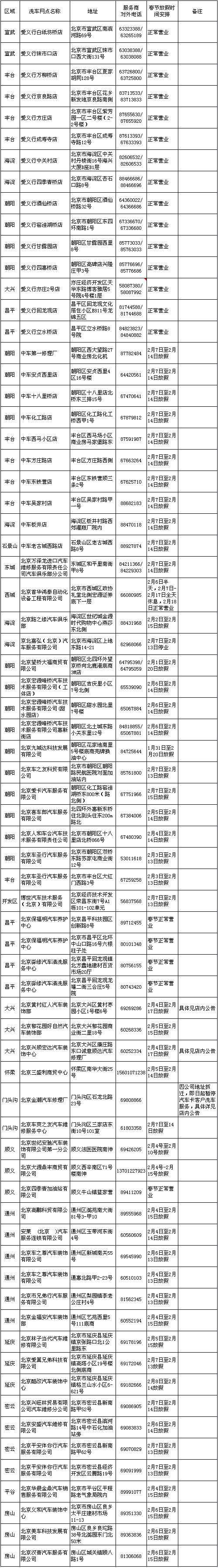 2016年北京地区汽车卡洗车服务商春节洗车安排