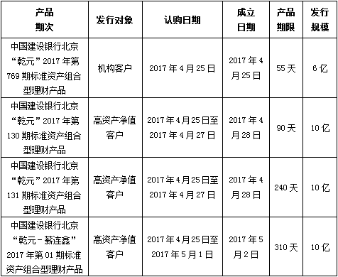 中国建设银行北京市分行定于2017年4月25日发行理财产品,现将相关发行情况公告如下: