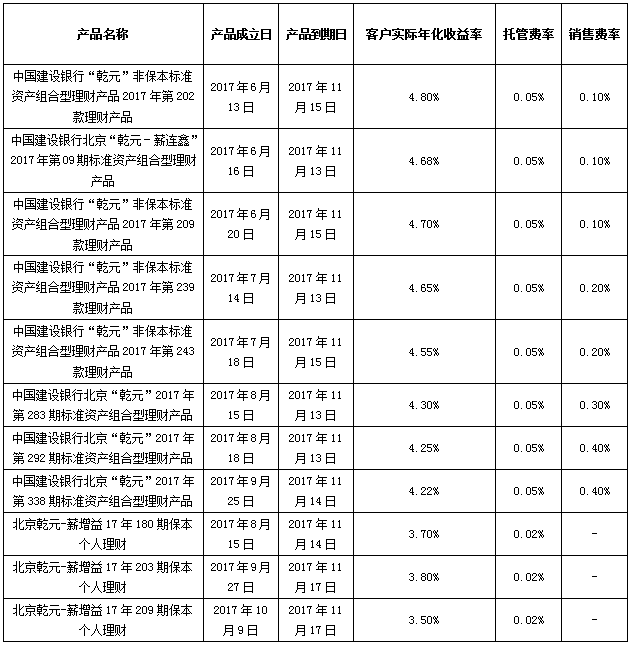 根据与投资者的约定,中国建设银行发行的下列理财产品已经到期并完成资金兑付,现将有关情况公告如下: