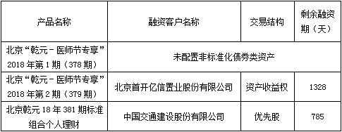 依照《中国银监会关于规范商业银行理财业务投资运作有关问题的通知》(银监发〔2013〕8号)要求,现对本期产品投资非标准化债权资产清单披露如下: