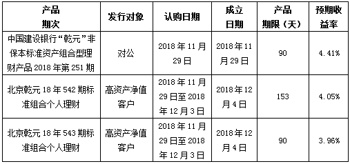 建行北京市分行理财产品发行公告2018年11月29日