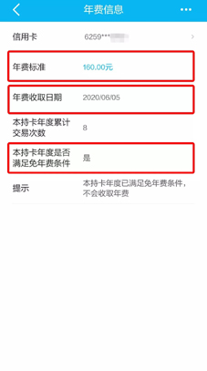 登录“中国建设银行”手机银行,在信用卡频道点击“年费信息”,即可查询名下各龙卡信用卡的年费标准、年费收取日期、本年度是否满足免年费条件等信息。