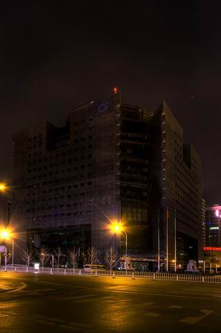 图为建设银行总行本部办公楼关闭照明的景象。