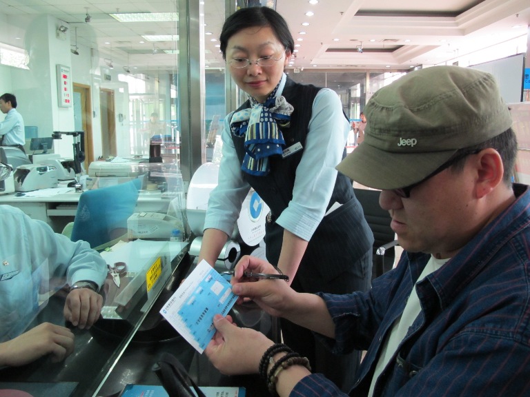记者在建行北京市分行网点见到,一张薄薄的淡蓝色塑料卡片不仅可以让视障人士准确识别各种硬币和纸币的面额大小,还能帮他们在银行凭单的正确位置签名。