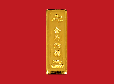 顶部以简单线条勾勒出传统的马图腾示于众人,充分体现了整个金条的设计主题。中部以“金马纳福”四字寓意了马年福气将至。