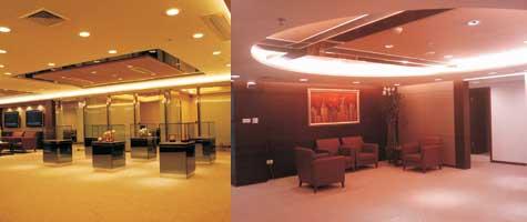 中心共设置了多个功能区域,分别为业务办理区,产品陈列区,独立VIP室,品茶区、多功能区、客户洽谈区、办公区、理财区等。