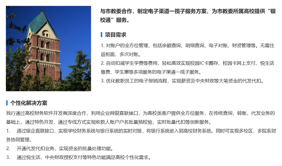 随着教育行业的不断规范化,高校对于财务管理信息化、自动化的需求越来越迫切,财务人员、教职员工、在校学生客户资源庞大、服务场景丰富、资源优化价值不断放大。